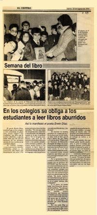En los colegios se obliga a los estudiantes a leer libros aburridos [artículo]. El Centro. -- ago. 25, 1994, p. 18 .
