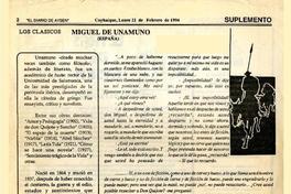 Miguel de Unamuno [artículo]. El Diario de Aysén. -- feb. 21, 1994, p. 2 (suplemento) .