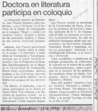 Doctora en literatura participa en coloquio [artículo]. El Sur (Diario : Concepción, Chile)-- oct. 17, 1994, p. 6. .
