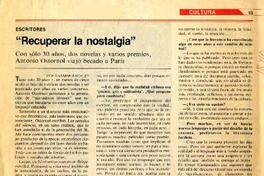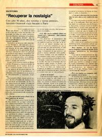 "Recuperar la nostalgia" : [entrevista] [artículo] / Ana María Foxley. Hoy. -- no. 374 (sept. 17, 1984) p. 53 .