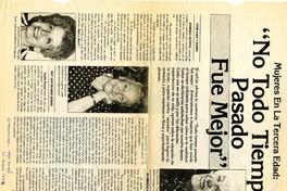 Mujeres en la tercera edad, "No todo tiempo pasado fue mejor" [artículo]. El Mercurio (Santiago). -- ene. 10, 1984, p. 10 (suplemento) retr. .