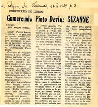 Gumercindo Pinto Devia, Suzanne [artículo] / José Vargas Badilla. La Región (San Fernando). -- mar. 31, 1984, p. 3. .