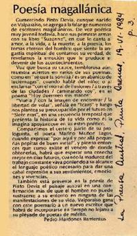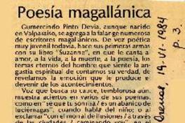 Poesía magallánica [artículo] / Pedro Mardones Barrientos. La Prensa Austral. -- jun. 19, 1984, p. 3. .