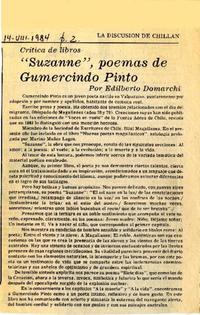 "Suzanne", poemas de Gumercindo Pinto [artículo] Edilberto Domarchi.