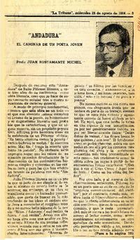 "Andadura" [artículo] / Juan Bustamante Michel. La Tribuna. -- ago. 29, 1984, p. 3 y 10 retr. .