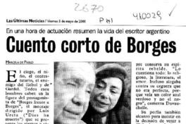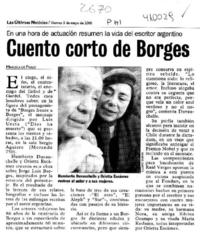 Cuento corto de Borges [artículo] Marcela de Pablo Las Últimas Noticias (Diario : Santiago, Chile)-- mayo 5, 2000, p. 41 retr. .