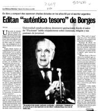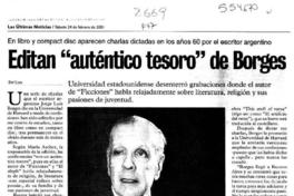 Editan "auténtico tesoro" de Borges [artículo] Las Últimas Noticias (Diario : Santiago, Chile)-- feb. 24, 2001, p. 47 retr. .