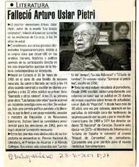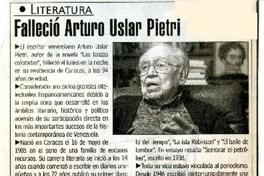 Falleció Arturo Uslar Pietri [artículo] El Metropolitano feb. 28, 2001, p. 7 retr. .