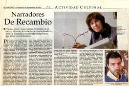 Narradores de recambio [artículo] El Mercurio (Santiago) sept. 9, 2001, p. C9 retr. .