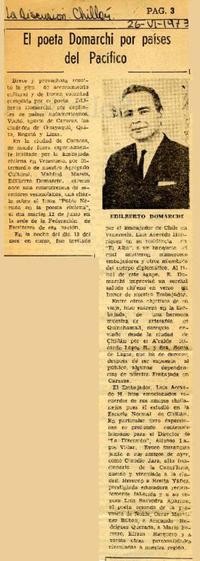 El poeta Domarchi por países del Pacífico. [artículo] La Discusión (Chillán, Chile)-- jun. 26, 1973, p. 3. retr. .