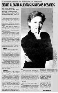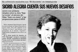 Sigrid alegría cuenta sus nuevos desafíos [artículo] / Christian Godoy R. El Mercurio (Diario : Antofagasta, Chile)-- ene. 26, 2003, p. A31. retr. .