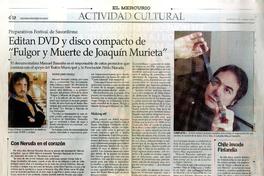 Editan DVD y disco compacto de "Fulgor y muerte de Joaquín Murieta" [artículo] / Maureen Lennon Zaninovic. El Mercurio (Diario : Santiago, Chile)-- jun. 22, 2003, p. C12. retr. .