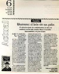 Unamuno, el león sin sus gafas [artículo] / Alfredo Barría M. El Sur (Diario : Concepción, Chile)-- mayo 18, 2003, p. 6. il. .