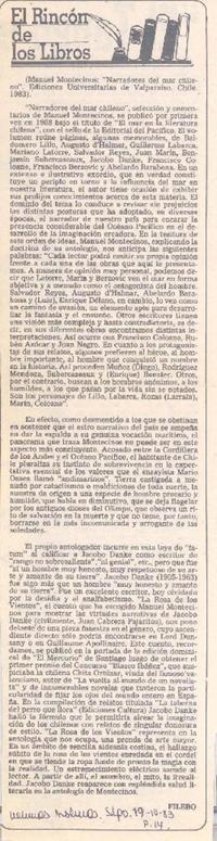 Narradores del mar chileno" [artículo] / Filebo. Las Últimas Noticias (Diario : Santiago, Chile)-- abr. 19, 1983, p. 14. .