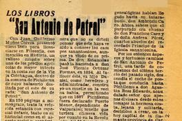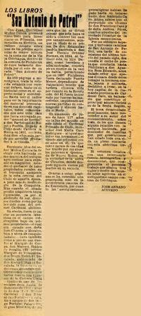 San Antonio de Petrel" [artículo] / José Arraño Acevedo. El Cóndor (Diario : Santa Cruz, Chile)-- oct. 22, 1983, p. 2. .