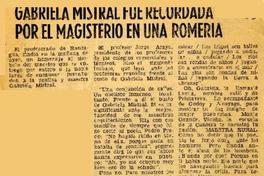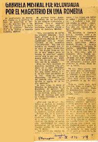 Gabriela Mistral fue recordada por el magisterio en una romería. [artículo] El Rancagüino (Diario : Rancagua, Chile)-- sept. 12, 1970, p. 4. .