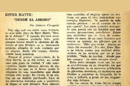Materias: Autoras chilenas - Matte, Ester - Desde el abismo