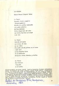 La poesía. [artículo] Poetas de Cauquenes (Cauquenes, Chile)-- no. 6 (dic. 1981) p. 19. .