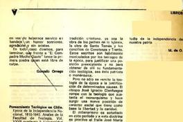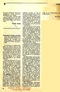 Pensamiento teológico en Chile [artículo] / M. de O. Vigilia (Santiago, Chile)-- no. 15 (nov. 1978) p. 62. .