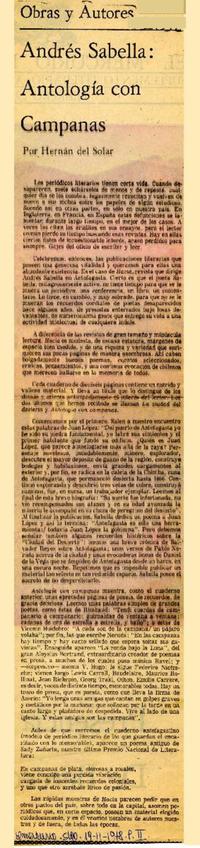 Andrés Sabella, Antología con campanas [artículo] Hernán del Solar.