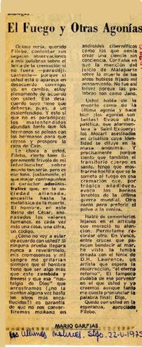 El Fuego y otras agonías [artículo] / Mario Garfias. Las Últimas Noticias (Diario : Santiago, Chile)-- mayo 22, 1975. .