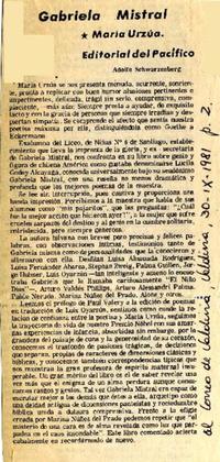 Gabriela Mistral [artículo] / Adolfo Schwarzenberg. El Correo de Valdivia (Valdivia, Chile)-- sept. 30, 1981, p. 2. .