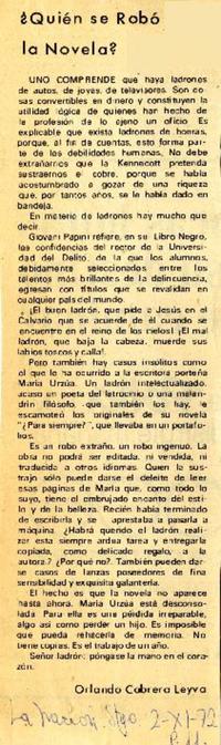 Quién se robó la novela? [artículo] / Orlando Cabrera Leyva. La Nación (Diario : Santiago, Chile)-- nov. 2, 1972, p. 11. .
