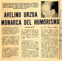Avelino Urzúa monarca del humorimo. [artículo] La Nación (Diario : Santiago, Chile)-- feb. 23, 1970, p. 12. .