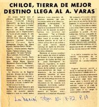 Chiloé, tierra de mejor destino llega al A. Varas. [artículo] La Nación (Diario : Santiago, Chile)-- oct. 10, 1972, p. 19. .