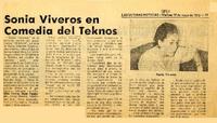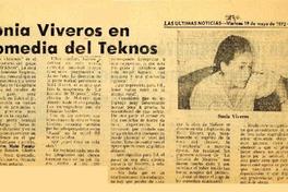 Sonia Viveros en comedia del Teknos. [artículo] Las Últimas Noticias (Diario : Santiago, Chile)-- mayo 19, 1972, p. 17. retr. .
