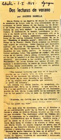 Dos lecturas de verano [artículo] / Andrés Sabella. La Estrella de Iquique (Diario : Iquique, Chile)-- ene. 1, 1968. .