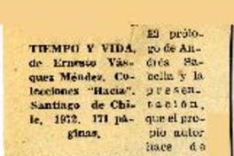 Materias: Autores chilenos - Vásquez Méndez, Ernesto - Tiempo y vida