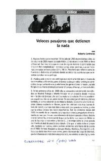 Veloces pasajeros que detienen la nada [artículo] Roberto Contreras.