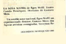 Materias: Autores chilenos - Wolff, Egon - Niñamadre