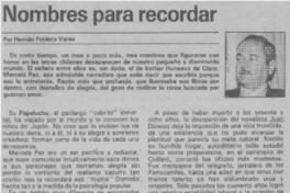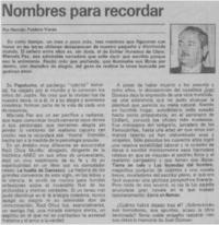Nombres para recordar [artículo] / Hernán Poblete Varas La Tercera (Diario : Santiago, Chile)-- jun. 23, 1985, p. 13 (2do. cuerpo). retr. .