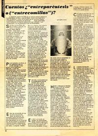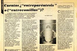 Cuentos ¿"entreparéntesis" o ("entrecomillas")? [artículo] / Carlos Iturra. La Nación (Diario : Santiago, Chile)-- jun. 14, 1985, p. 18. il. .