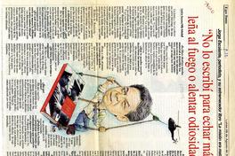 No lo escribí para echar más leña al fuego o alentar odiosidades : [entrevistas] [artículo] / Carolina Rousseau y Willy Haltenhoff. La Nación (Diario : Santiago, Chile)-- ago. 28, 2000, p.32 (suplemento "Ego Sum") il. .