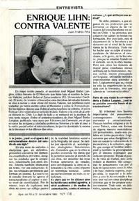 Enrique Lihn: contra Valente: [entrevistas] [artículo] / Juan Andrés Piña. APSI (Revista : Santiago, Chile)-- no. 128 (oct. 18, 1983) p. 32-33. retr. .