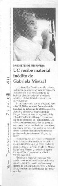 UC recibe material inédito de Gabriela Mistral [artículo].