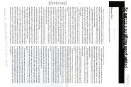 Se parece a su última oportunidad [artículo] / Diamela Eltit. Revista de Crítica Cultural (Revista : Santiago, Chile)-- no. 20 (jun. 2000) p. 58. .