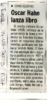 Oscar Hahn lanza libro. [artículo] La Tercera (Diario : Santiago, Chile)-- ago. 14, 2003, p. 37. .