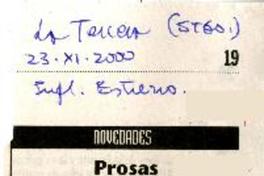 Prosas [artículo] / Carlos Maldonado R. La Tercera (Diario : Santiago, Chile)-- nov. 23, 2000, p. 19. il. .