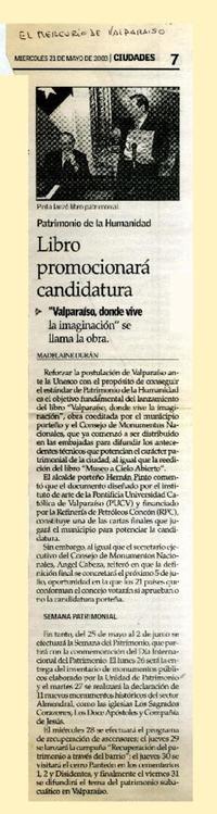 Libro promocionará candidatura [artículo] / Madelaine Durán. El Mercurio (Diario : Valparaíso, Chile)-- mayo 21, 2003, p. 7. retr. .