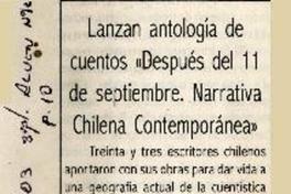 Lanzan antología de cuentos "Después del 11 de septiembre. Narrativa Chilena Contemporánea". [artículo]