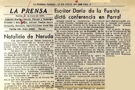 Natalicio de Neruda [artículo] La Prensa (Diario : Parral, Chile)-- jul. 11, 1999, p. 3. .