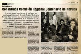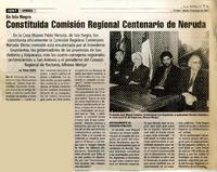 En Isla Negra constituida Comisión Regional Centenario de Neruda [artículo] Rafael Vallvé.