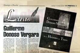 Guillermo Donoso Vergara [artículo] / Sergio Martínez Baeza. La Prensa (Diario : Santiago, Chile)-- ene. 14, 2001, p. 3. il., retr. .