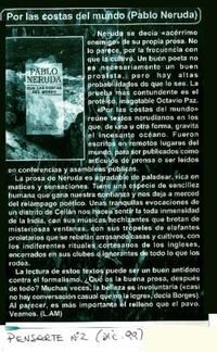 Por las costas del mundo [artículo] / Pablo Neruda ; prólogo, selección y referencias cronológicas de Jaime Quezada. Pensarte (Revista : Santiago, Chile)-- no. 2 (dic. 1999) p. 14. il. .
