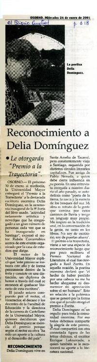 Reconocimiento a Delia Domínguez. [artículo] El Diario Austral (Diario : Osorno, Chile)-- ene. 24, 2001, p. A18. retr. .