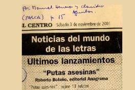 "Putas asesinas" [artículo] / Manuel Herrera y Claudio Aguilar. El Centro (Diario : Talca, Chile)-- nov. 3, 2001, p. 15. il. .